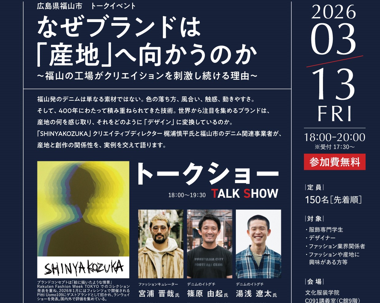 【東京開催】SHINYAKOZUKA×デニム生産量日本一のまち・福山市によるトークイベント
